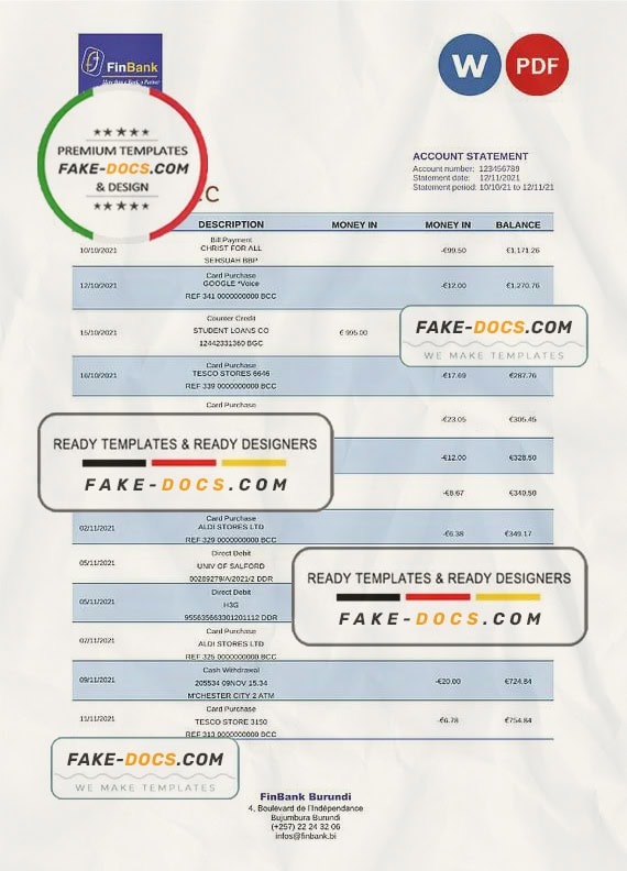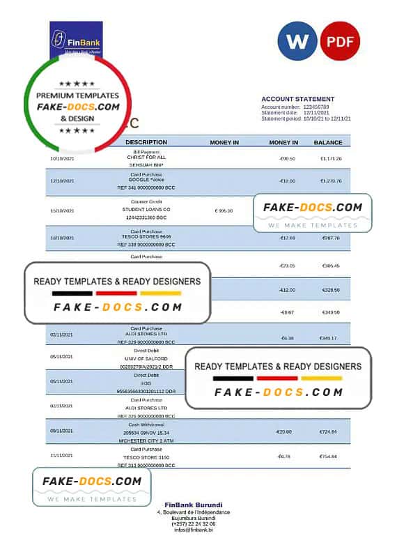 Burundi Fin Bank Statement Word and Pdf Template use for :
