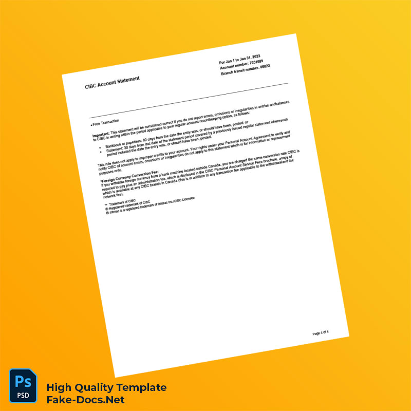 Canada CIBC Account Statement Template – Word and PDF Formats