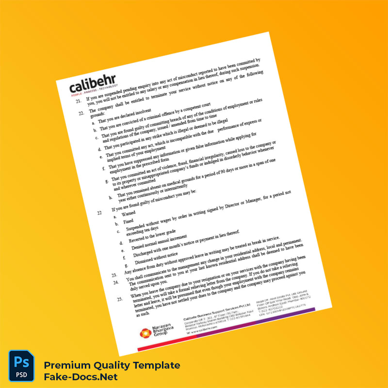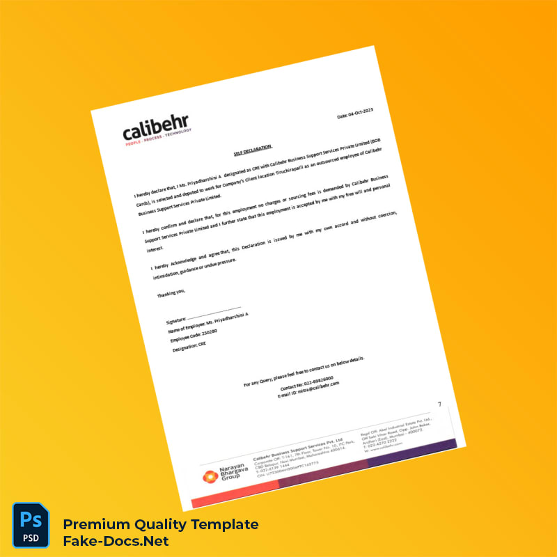 India Calibehr Business Support Services Pvt Ltd Employment Verification Letter Template (Word & PDF)