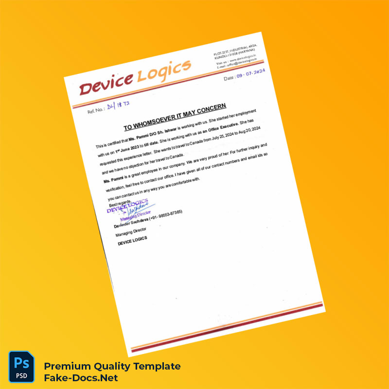 Be the first to review “India Device Logics Employment Certificate Template (Word & PDF)”