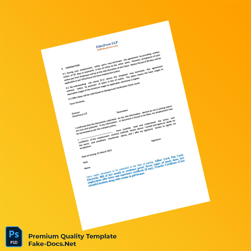 Streamline Your Employment Verification with India EthosFocus LLP Salary Certificate Template (Word & PDF)
