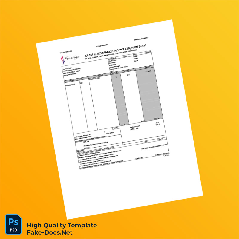 India Glam Road Marketing Pvt Ltd Retail Invoice Template: Streamline Your Billing Process