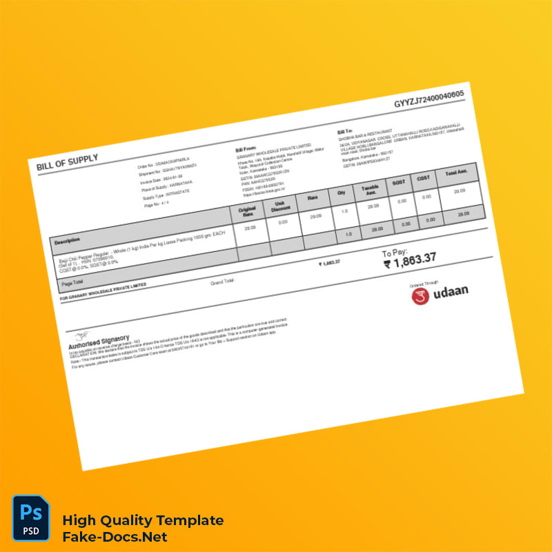 India Granary Wholesale Private Limited Invoice Template in Word and PDF Formats