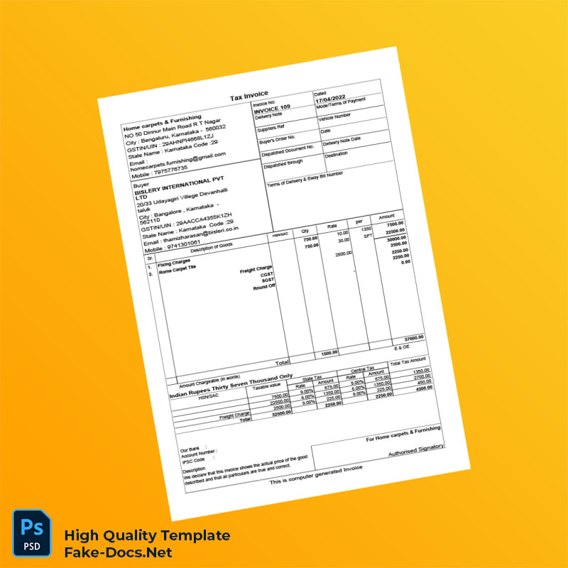 Be the first to review “India Home Carpets Furnishing Tax Invoice Template in Word and PDF formats”