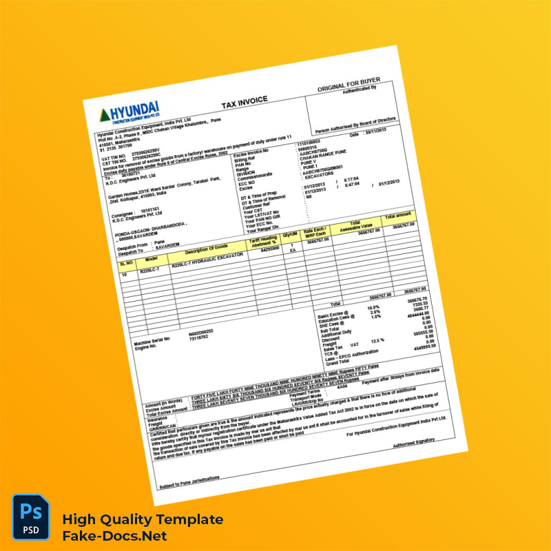 Get Your India Hyundai Construction Equipment Tax Invoice Template Today