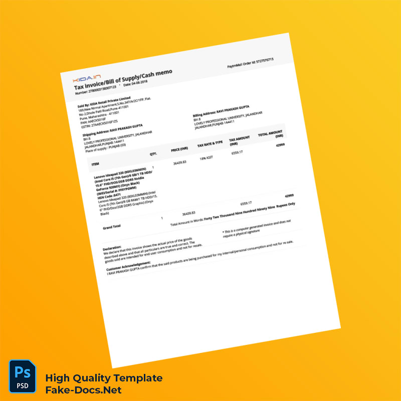 India KIDA Retail Private Limited Tax Invoice Template – Streamlined Invoicing Made Easy
