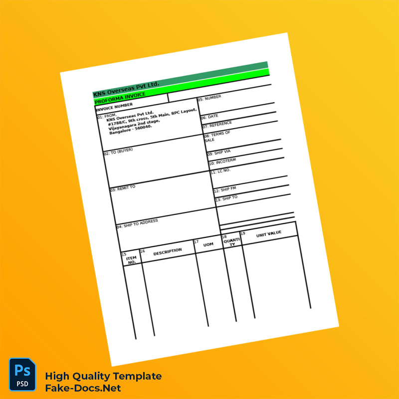 India KNS Overseas Proforma Invoice Template – Editable in Word and PDF