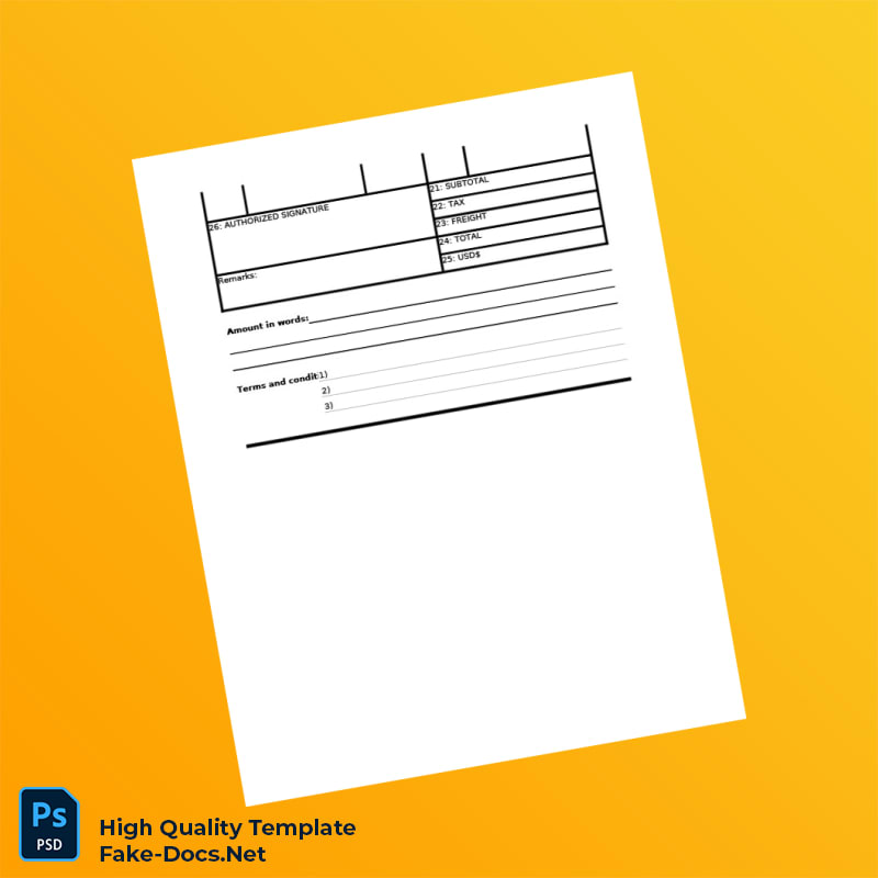 • Blank editable invoice template structure accommodates a wide range of transaction types and product categories.