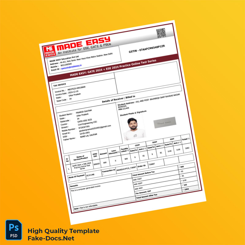 The India Made Easy Tax Invoice Template in Word and PDF formats is designed to simplify your invoicing process while ensuring compliance with Indian tax regulations. Whether you are a freelancer, a small business owner, or an accounting professional, this editable invoice template offers a reliable, professional solution that saves you time and reduces errors.
