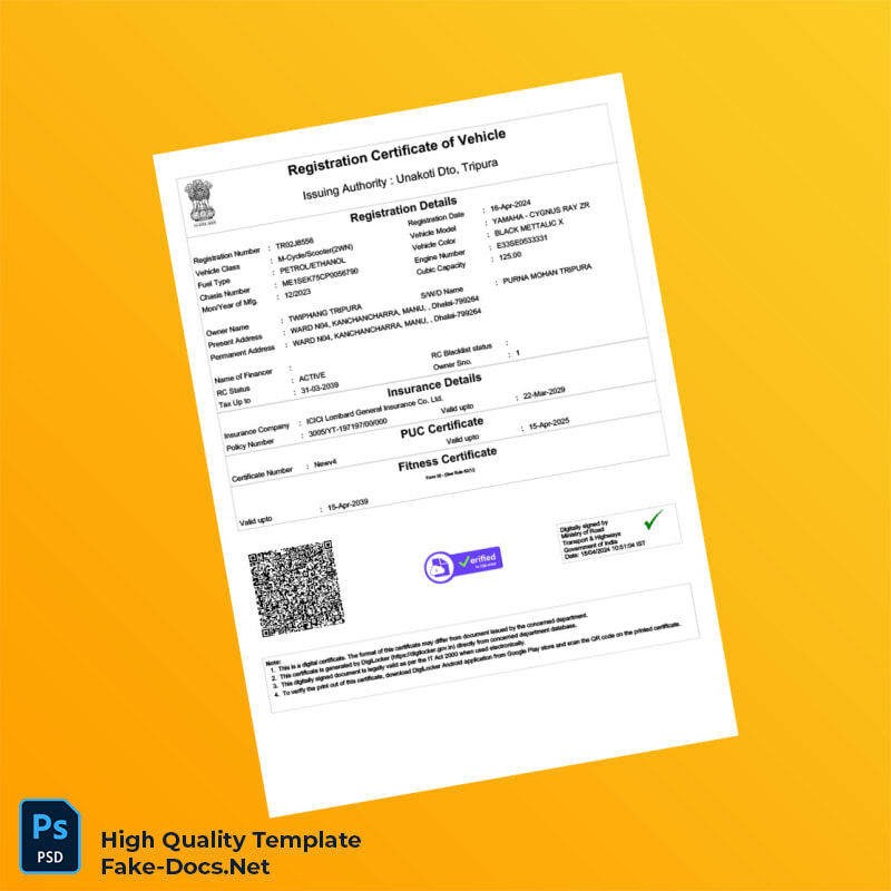 Don’t let missing or outdated certificates disrupt your operations. Secure the India Ministry of Road Transport Registration Certificate Template today and regain control of your documentation with speed and confidence. Ideal for professionals who demand precision and efficiency, this template supports compliance and operational continuity. Click here to download your registration certificate template now and experience hassle-free renewal or replacement.