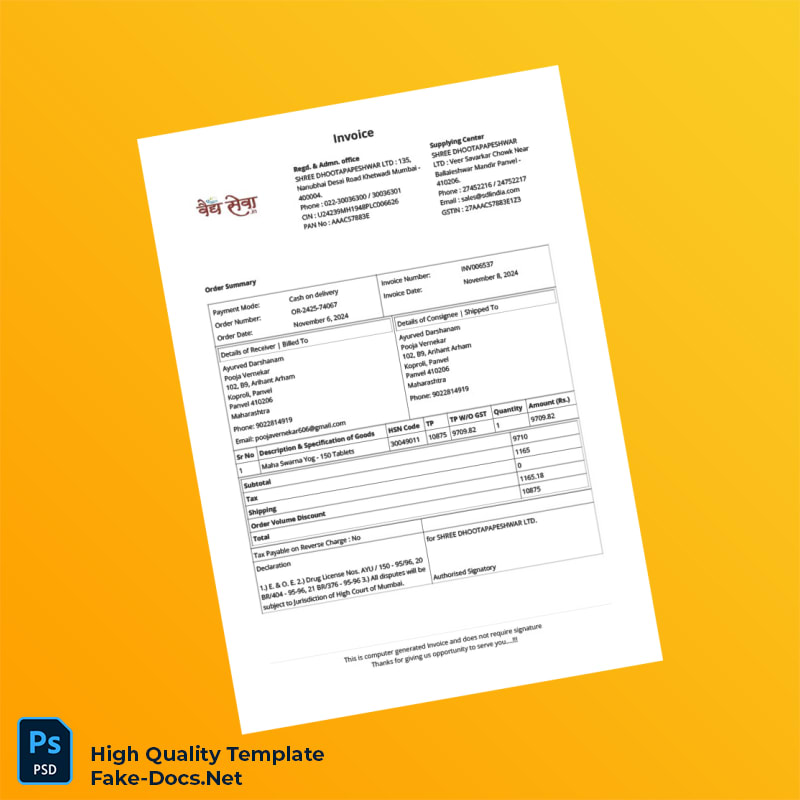 The India Shree Dhootapapeshwar Ltd Invoice Template offers a seamless solution for professionals needing a clean, editable document to manage billing efficiently. Available in both Word and PDF formats, this editable invoice template caters to businesses requiring a versatile and easy-to-customize invoicing tool that maintains professionalism and accuracy.