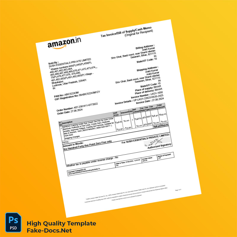 India Sush Essentials Private Limited Tax Invoice Template – Editable Word and PDF Formats