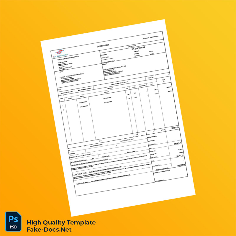 India Toprun Automotive Invoice Template in Word and PDF Formats