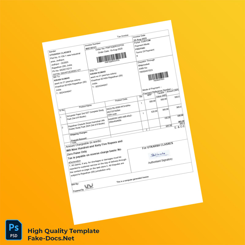 India Utkarsh Classes Invoice Template: Professional Editable Invoice in Word and PDF