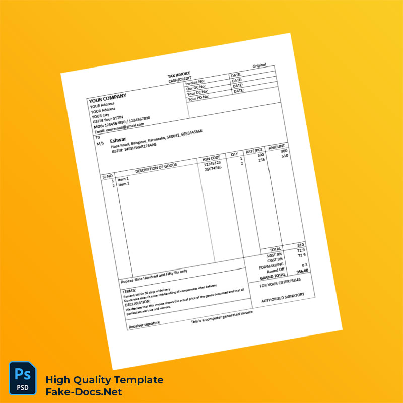 India Your Company Tax Invoice Template in Word and PDF Formats