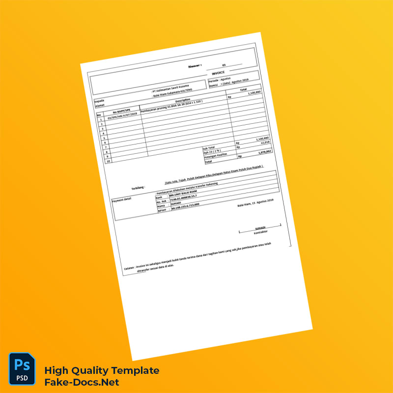 Indonesia PT Kalimantan Sawit Kusuma Invoice Template in Word and PDF Formats