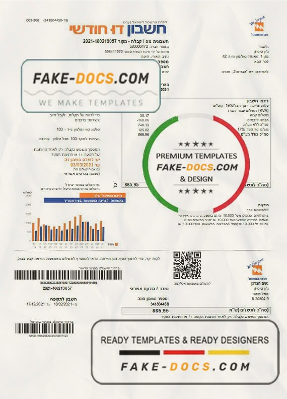Grab now fully editable Israel Electric Corporation utility bill Template from our website fake docs and put your own info to create a fake copy of Fake Israel Electric Corporation Utility Bill for proof of address and ready your own novelty documents. It’ll be so beneficial if your utility bill is expired, stolen or not available. We also have passport psd template, ID Card psd template, Bank Statement psd template, drivers license psd template & Utility bill psd template