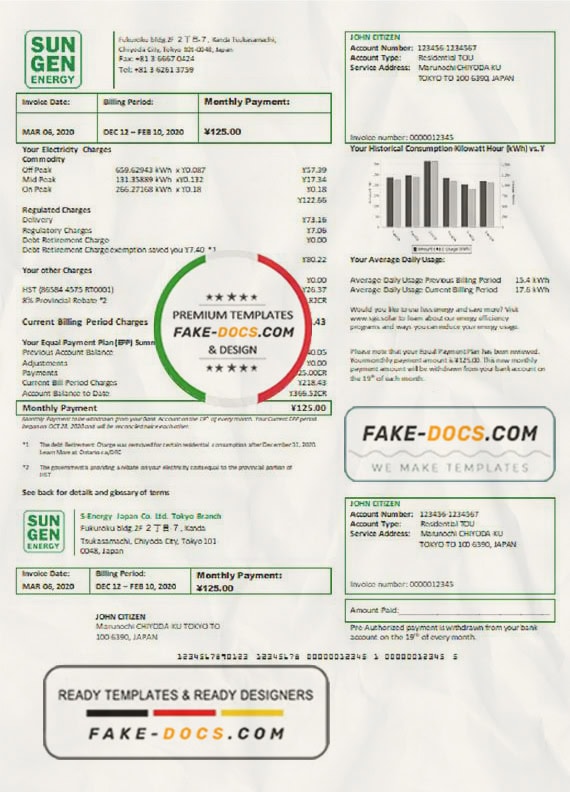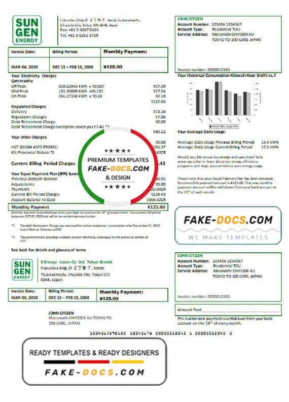 Grab now fully editable Japan S-Energy Japan Co. Ltd. Tokyo Branch utility bill Template from our website fake docs and put your own info to create a fake copy of Fake Japan S-Energy Japan Co. Ltd. Tokyo Branch Utility Bill for proof of address and ready your own novelty documents. It’ll be so beneficial if your utility bill is expired, stolen or not available. We also have passport psd template, ID Card psd template, Bank Statement psd template, drivers license psd template & Utility bill psd template