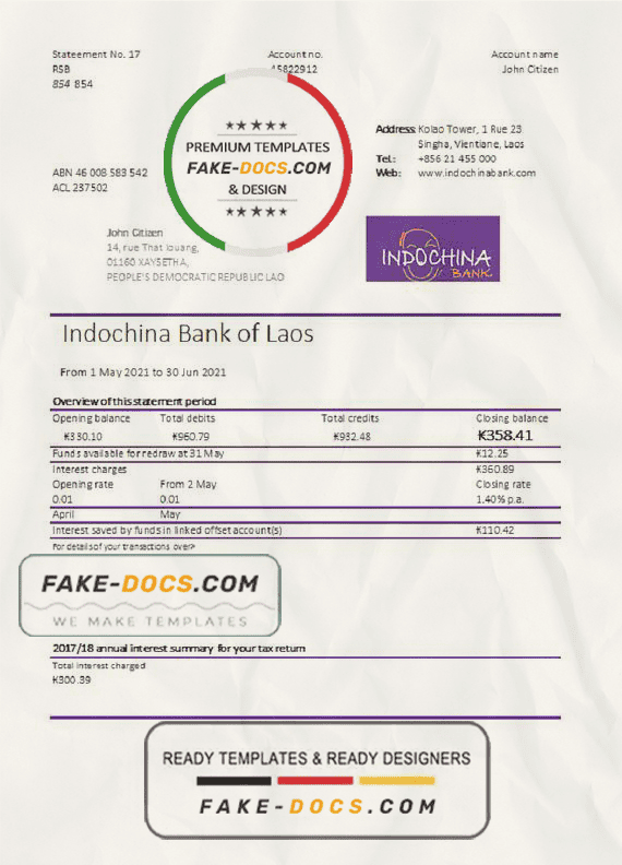 Grab now fully editable Laos Indochina Bank Statement Excel Template from our website Fake Docs and put your own info to create Fake Bank Statement template Excel and ready your own novelty documents. It’ll be so beneficial if your Bank Statement is expired, stolen or not available. We also have passport psd template, ID Card psd template, Bank Statement psd template, drivers license psd template & Utility bill psd template