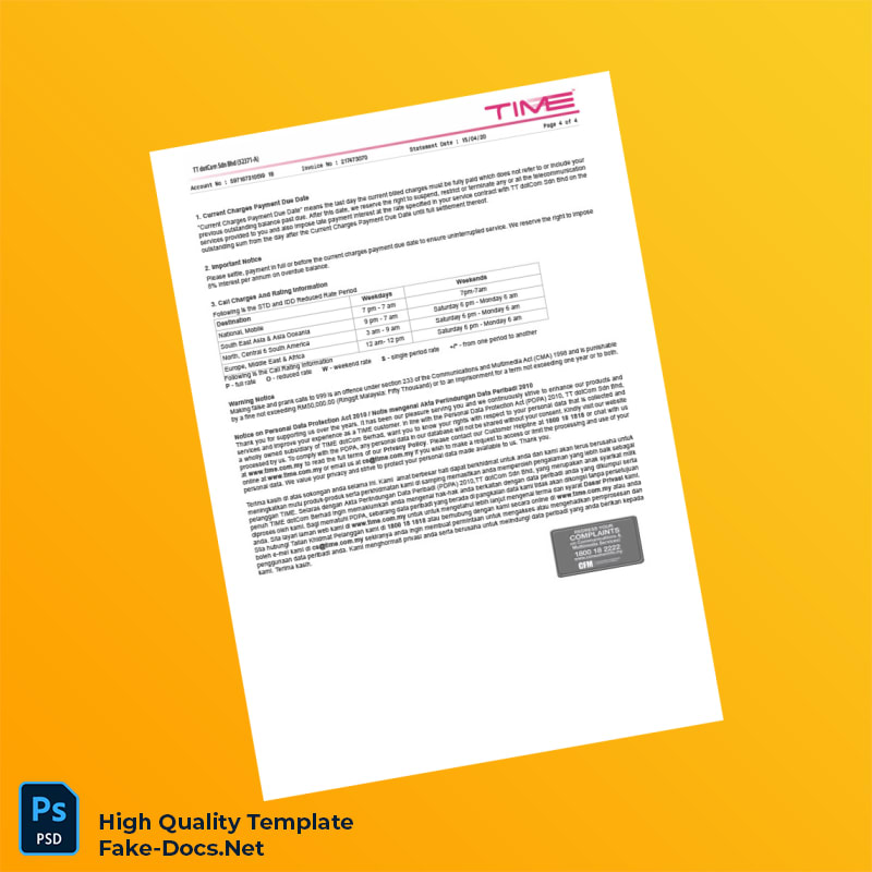 Malaysia TT dotCom Sdn Bhd Editable Internet Bill Template