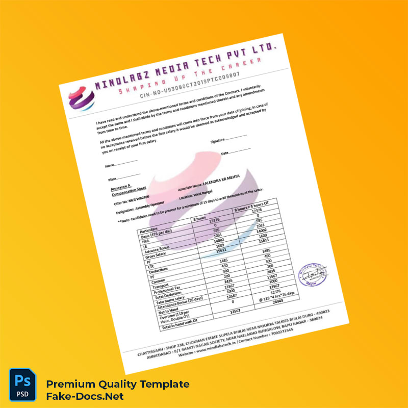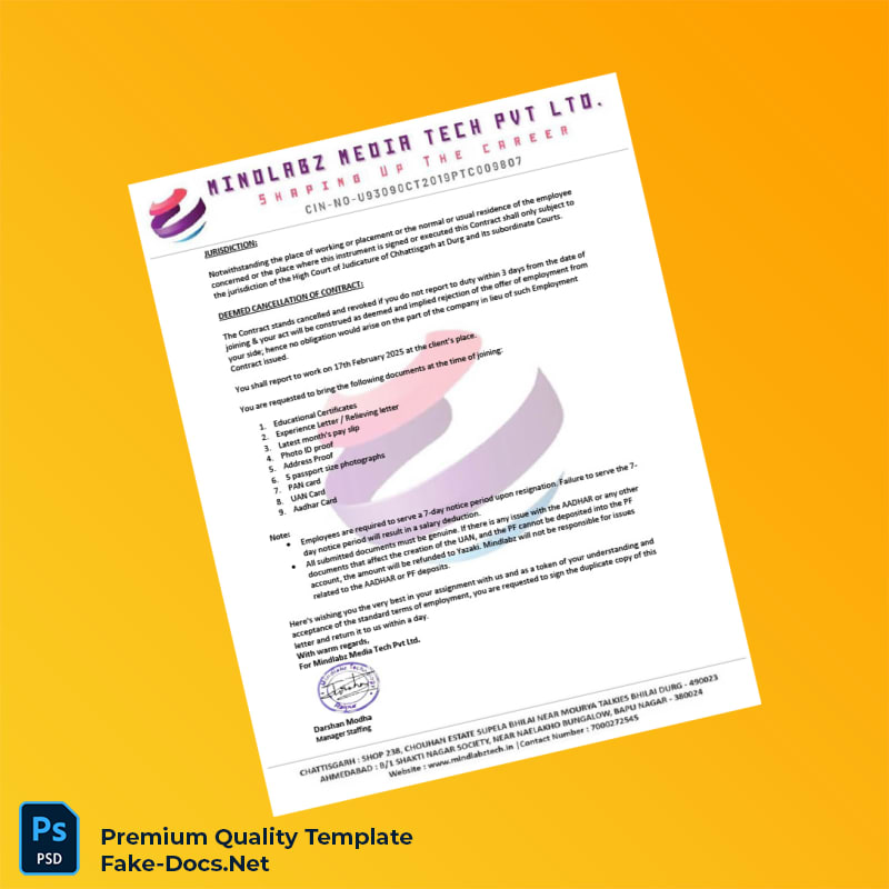 Mindlabz Media Tech Pvt Ltd Employment Verification Letter Template (Word & PDF) 5 page