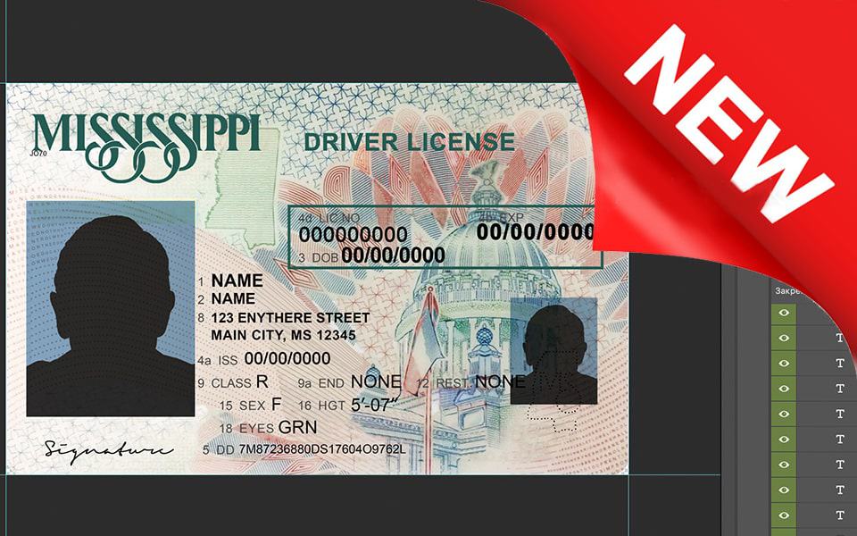 Mississippi Driver License psd template. Fully editable photoshop template. High quality template. Easy to customize, Layer based, fonts included. you can edit this template and put any name, address, license number, Id number, birth date, height, weight, expire date, change photos etc. This Photoshop template is a layer based psd file and it’s easy to Editing.To modify this photoshop template file you will need a Photo editing software such as Adobe Photoshop No need to be expert on editing software like adobe Photoshop. However, You just have to basic knowledge on adobe photoshop, to edit this template. Never used low quality template. Your account may be suspended.