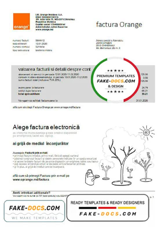 Moldova Orange Factura utility bill Word and Pdf Template use for :