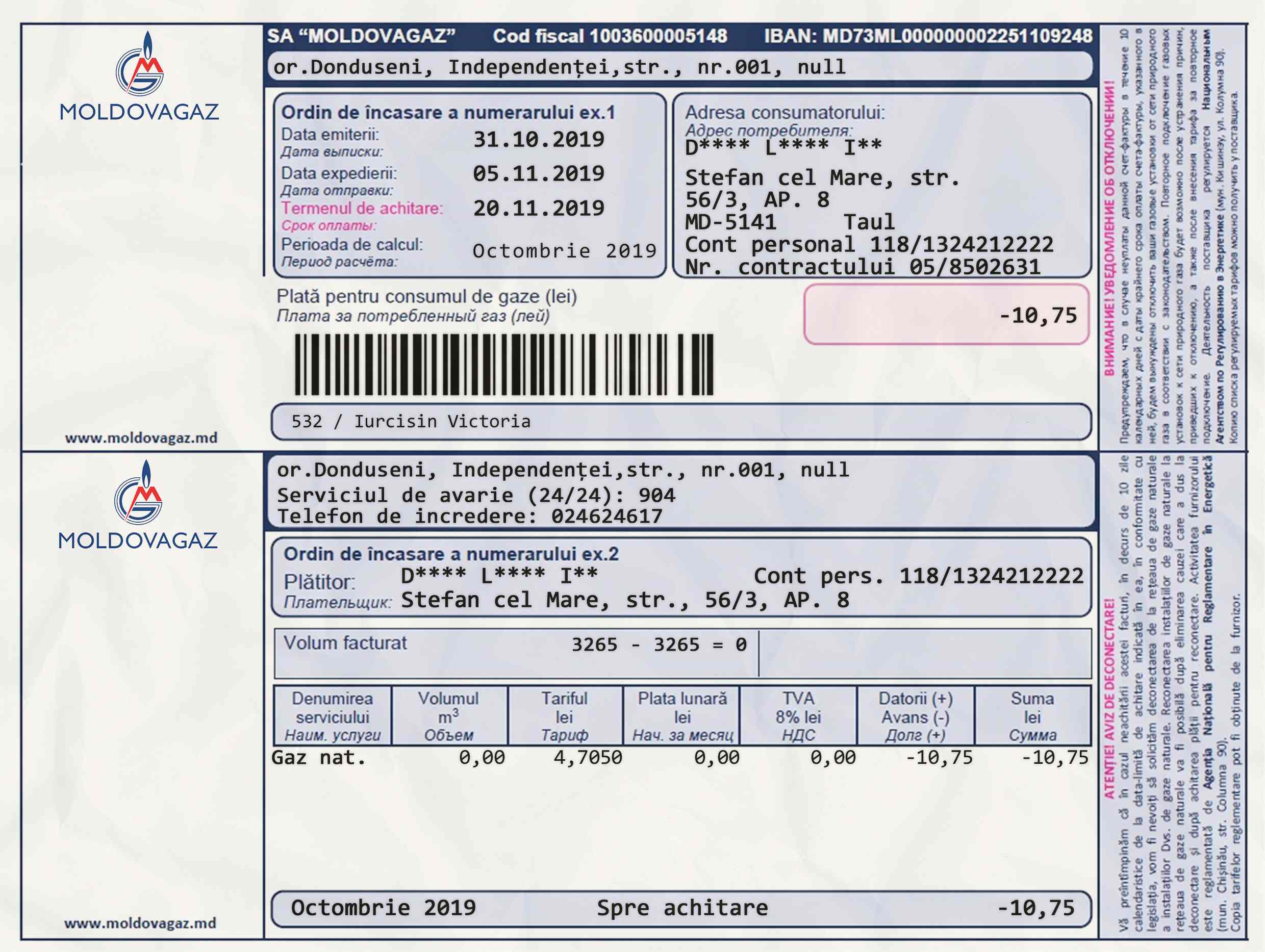 Grab now fully editable Moldova Utility Bill psd Template from our website fake docs and put your own info to create a fake copy of Fake Moldova Utility Bill psd Template and ready your own novelty documents. It’ll be so beneficial if your ID Card is expired, stolen or not available. We also have passport psd template, ID Card psd template, Bank Statement psd template, drivers license psd template & utility bill psd template