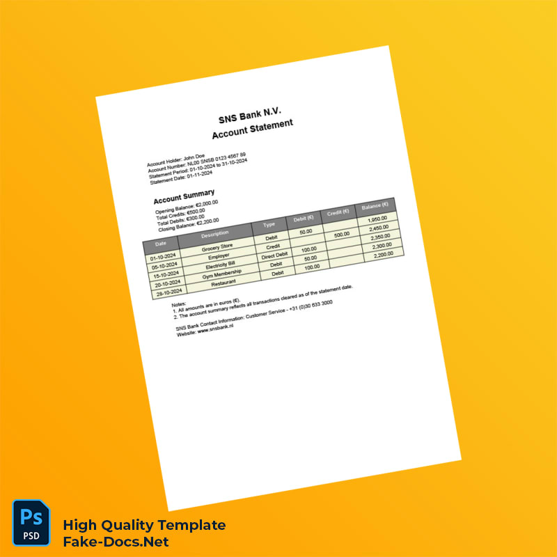Netherlands SNS Bank Account Statement Template in Word and PDF Formats