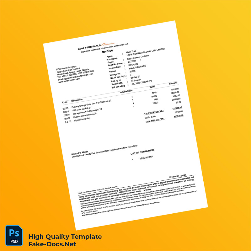 Nigeria APM Terminals Invoice Template in Word and PDF Formats