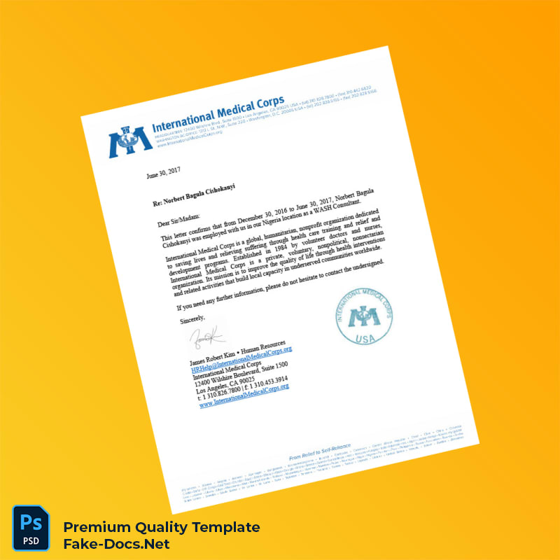 Nigeria International Medical Corps Employment Verification Letter Template (Word & PDF) for quick, professional proof of employment with easy editing and instant download.