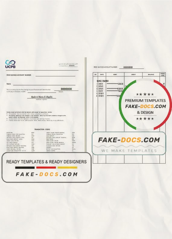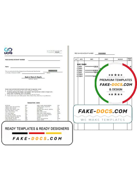Grab now fully editable Philippines The United Coconut Planters Bank Statement Word Template from our website Fake Docs and put your own info to create Fake Bank Statement Word template and ready your own novelty documents. It’ll be so beneficial if your Bank Statement is expired, stolen or not available. We also have passport psd template, ID Card psd template, Bank Statement psd template, drivers license psd template & Utility bill psd template