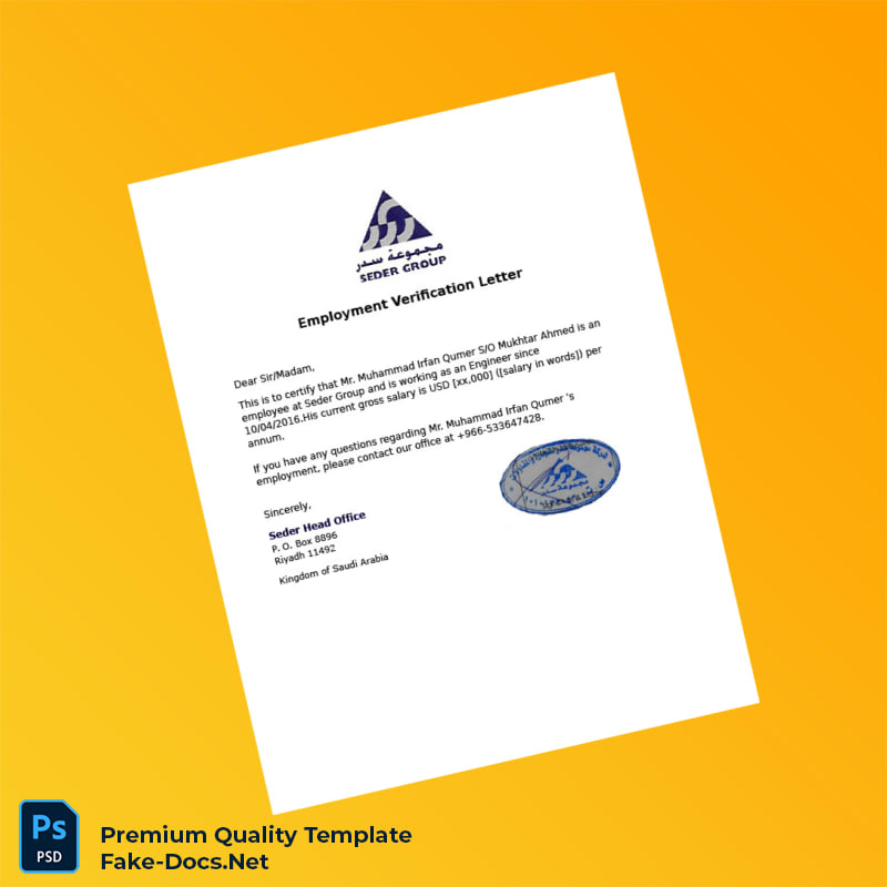 Saudi Arabia Seder Group Employment Verification Letter Template (Word & PDF)