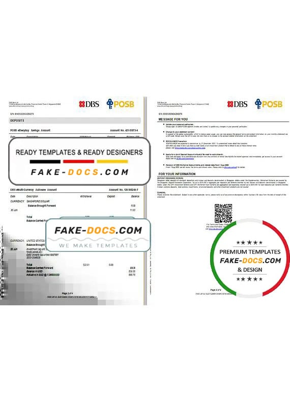 Be the first to review “Singapore DBS bank proof of address statement template in Excel and PDF format, 4 pages”