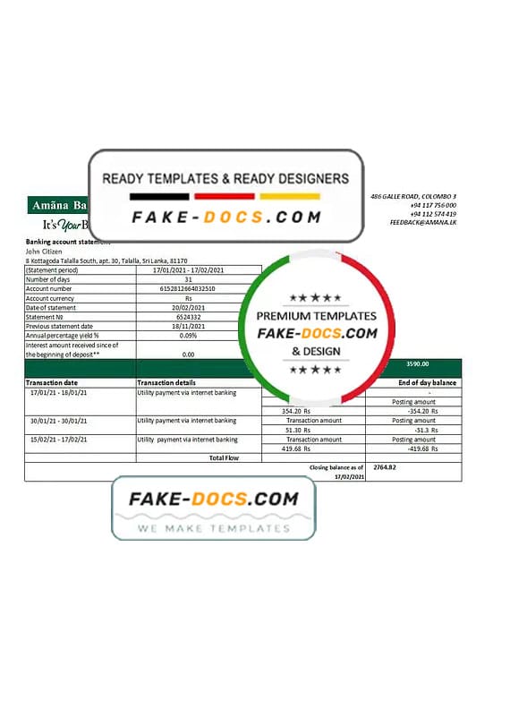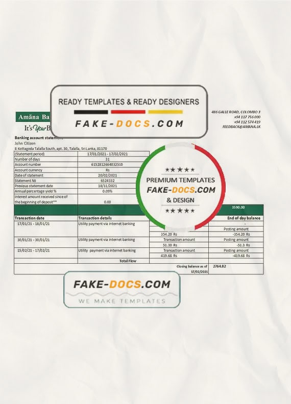 Grab now fully editable Sri Lanka Amana Bank Statement Excel Template from our website Fake Docs and put your own info to create Fake Bank Statement template Excel and ready your own novelty documents. It’ll be so beneficial if your Bank Statement is expired, stolen or not available. We also have passport psd template, ID Card psd template, Bank Statement psd template, drivers license psd template & Utility bill psd template
