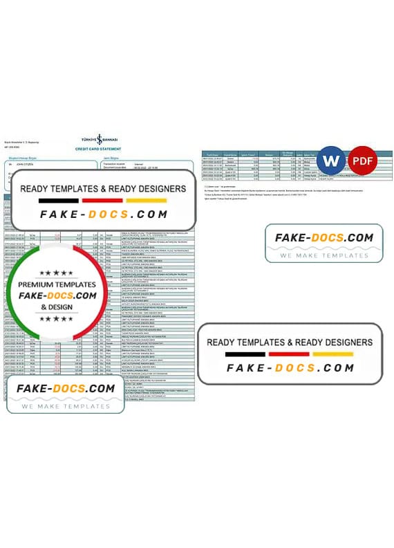 Turkey Bankasi Bank Statement Word template . Fully editable Word template. High quality template. Easy to customize, Layer based, fonts included. you can edit this template and put any name, address, license number, Id number, birth date, height, weight, expire date, change photos etc. This Word template is a easy to Editing.To modify this Word template file you will need a Word editing software such as Microsoft Word. Never used low quality template. Your account may be suspended.