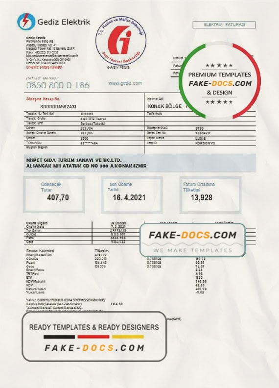 Grab now fully editable Turkey Gediz Elektrik utility bill Template from our website fake docs and put your own info to create a fake copy of Fake Turkey Gediz Elektrik Utility Bill for proof of address and ready your own novelty documents. It’ll be so beneficial if your utility bill is expired, stolen or not available. We also have passport psd template, ID Card psd template, Bank Statement psd template, drivers license psd template & Utility bill psd template