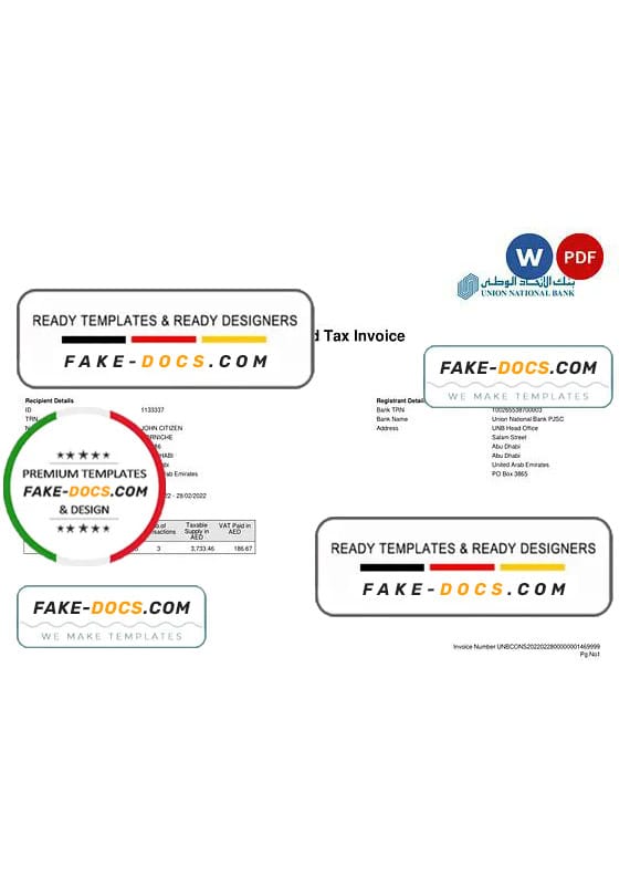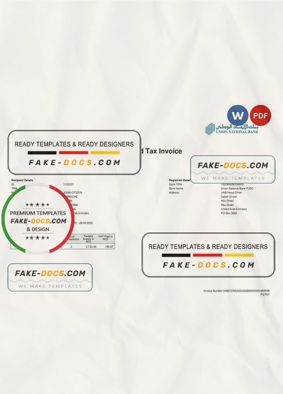Grab now fully editable UAE Abu Dhabi Union National Bank Statement Word Template from our website Fake Docs and put your own info to create Fake Bank Statement Word template and ready your own novelty documents. It’ll be so beneficial if your Bank Statement is expired, stolen or not available. We also have passport psd template, ID Card psd template, Bank Statement psd template, drivers license psd template & Utility bill psd template