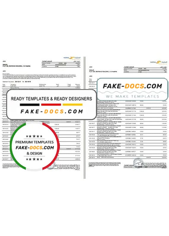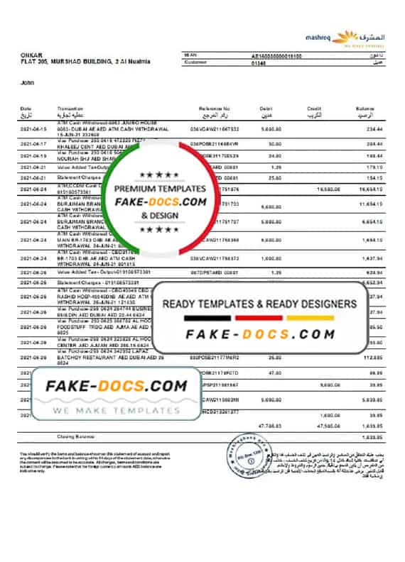 Grab now fully editable UAE Mashreq Bank Statement Excel Template from our website Fake Docs and put your own info to create Fake Bank Statement template Excel and ready your own novelty documents. It’ll be so beneficial if your Bank Statement is expired, stolen or not available. We also have passport psd template, ID Card psd template, Bank Statement psd template, drivers license psd template & Utility bill psd template
