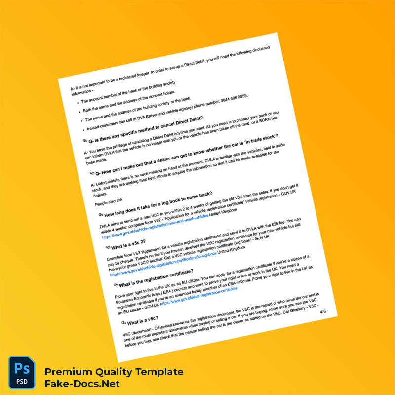 Download the UK DVLA Vehicle Registration FAQ DocumentTemplate (Word & PDF) for quick, editable, professional registration certificate solutions.