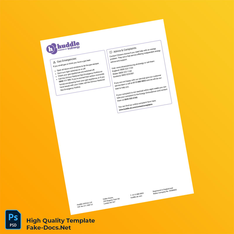 UK Huddle Energy Editable Utility Bill Template