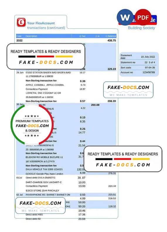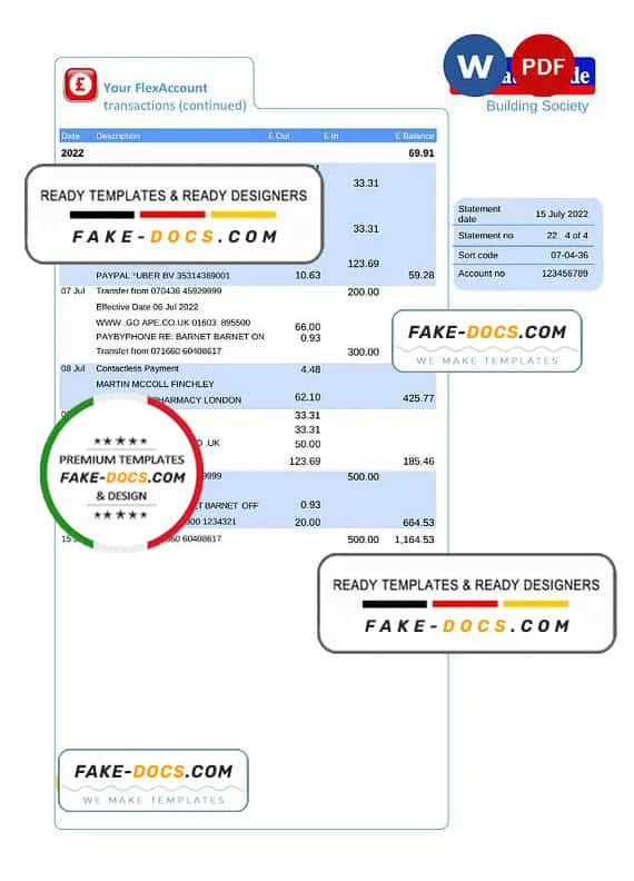 Grab now fully editable United Kingdom Nationwide Bank Statement Word Template from our website Fake Docs and put your own info to create Fake Bank Statement Word template and ready your own novelty documents. It’ll be so beneficial if your Bank Statement is expired, stolen or not available. We also have passport psd template, ID Card psd template, Bank Statement psd template, drivers license psd template & Utility bill psd template