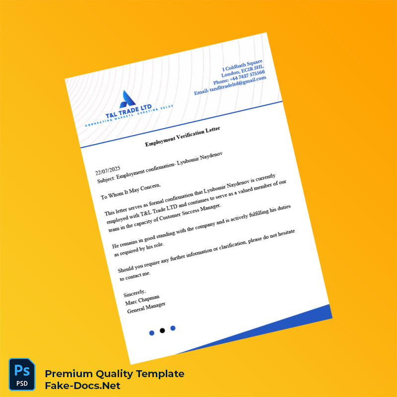 Reliable Employment Verification Made Simple with United Kingdom T L Trade LTD Employment Verification Letter Template