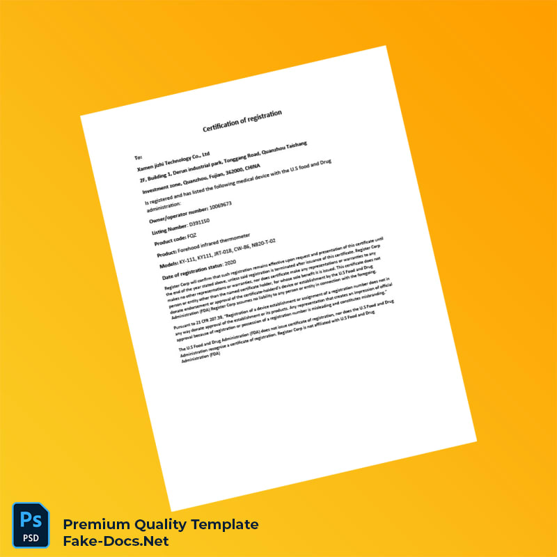Streamline Your Business Compliance with the United States FDA Registration Certificate Template (Word & PDF)