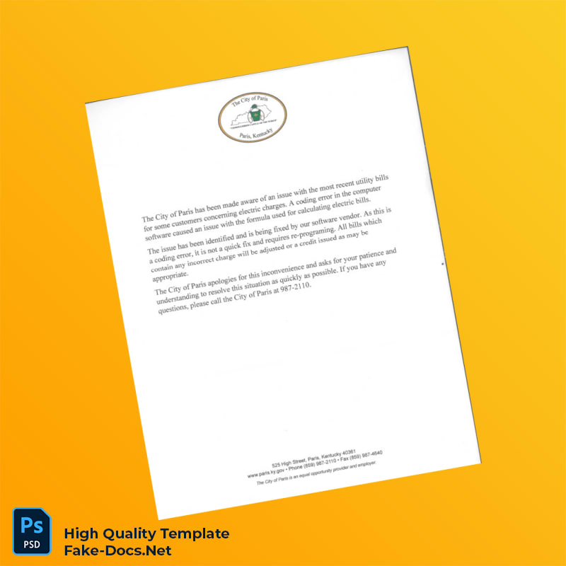 The USA City of Paris Editable Utility Bill Notice Template provides a seamless solution for professionals needing quick and reliable proof of address documentation. Whether you’ve lost your original document or need an updated version for a new tenant, this template covers all your needs in an easily editable format.