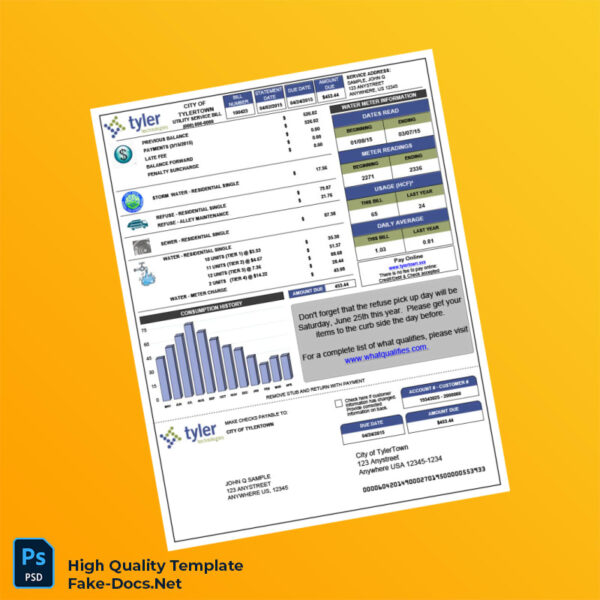 USA City of Tylertown Editable Utility Bill Template
