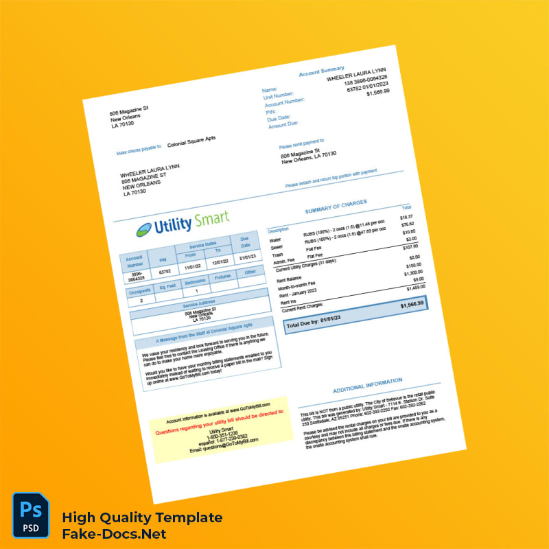 Don’t let missing documents impede your progress. Get the USA Colonial Square Apartments Editable Bill Template today and streamline your proof of address process. Experience the convenience of having it all at your fingertips. For similar templates, check out our US Utility Bill PSD Template and the Canada Ontario Utility Bill PSD Template. For more options, visit our external utility bill templates category.