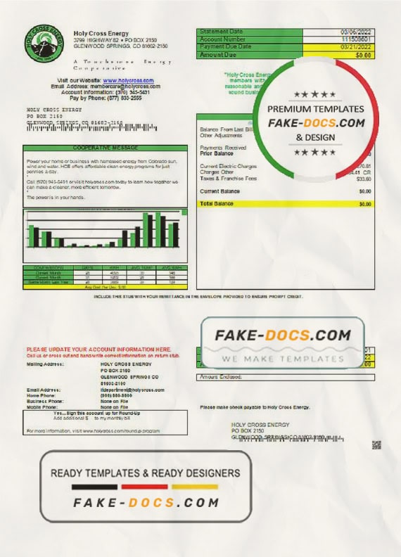 USA Colorado Holy Cross Energy utility bill Word and Pdf Template use for :