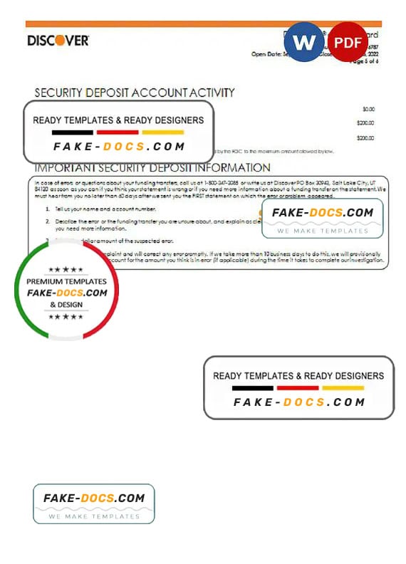 USA Discover Bank Statement Word template . Fully editable Word template. High quality template. Easy to customize, Layer based, fonts included. you can edit this template and put any name, address, license number, Id number, birth date, height, weight, expire date, change photos etc. This Word template is a easy to Editing.To modify this Word template file you will need a Word editing software such as Microsoft Word. Never used low quality template. Your account may be suspended.
