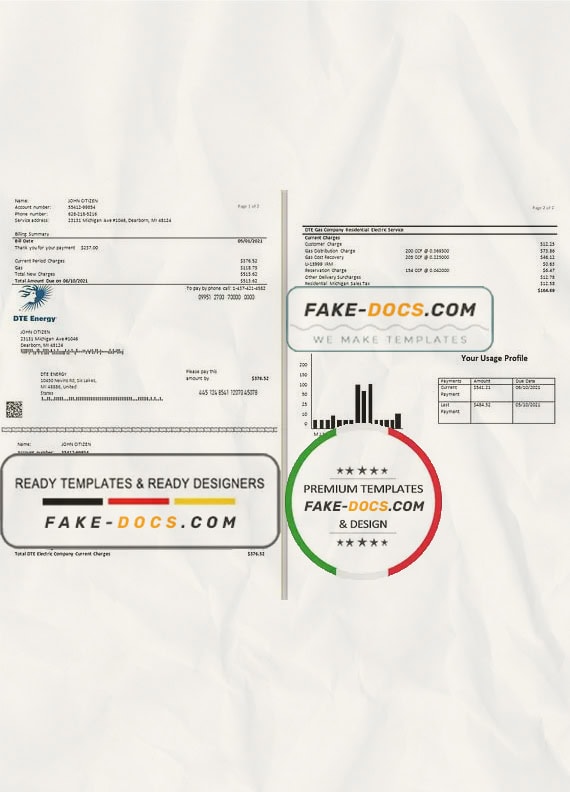 USA DTE Energy utility bill Word template . Fully editable Word template. High quality template. Easy to customize, Layer based, fonts included. you can edit this template and put any name, address, license number, Id number, birth date, height, weight, expire date etc. This Word template is a easy to Editing.To modify this Word template file you will need a Word editing software such as Microsoft Word. Never used low quality template. Your account may be suspended.